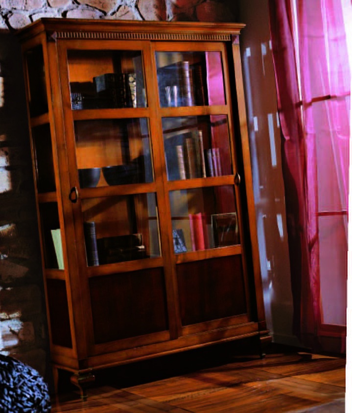 Showcase from Italian manufacturer Decora. Model made of solid wood. The upper part glazed, the lower deaf. Shelves made of transparent glass of high quality. Handles metal painted in Golden color. Decoration is the decorative carving handmade. The model is made in classic style.