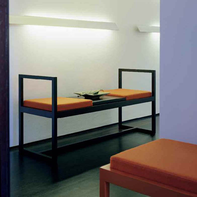 Bench from the Italian manufacturer to its linfa. The frame is made from solid wood, upholstery - leather or textiles from a range of companies. Great model for the hall or hallway in a contemporary style. Colours in stock.