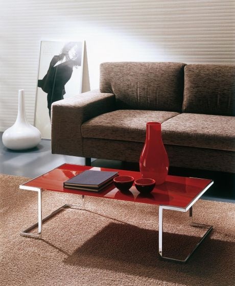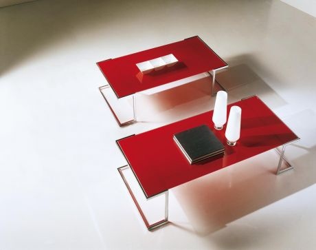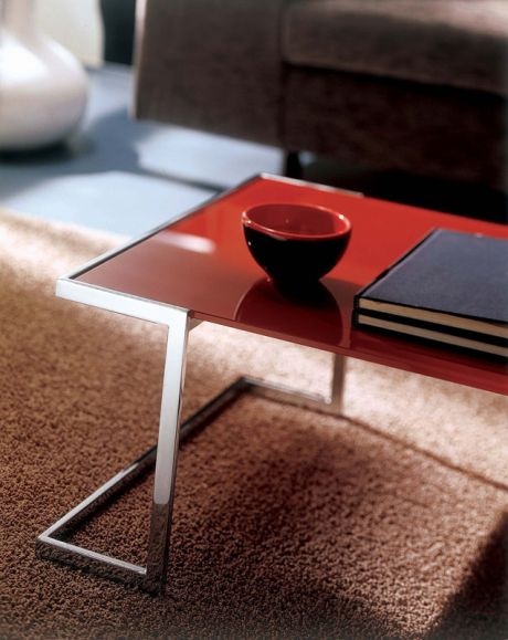 Atom table from Italian manufacturer Bontempi Casa. Coffee table with lacquered surface. The top is made of colored glass. The frame is aluminum. The model can be used as a coffee table.