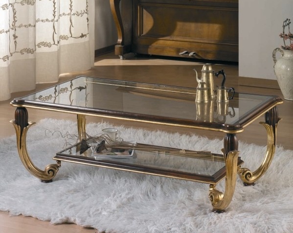 Sofa set from Italian producer Andrea Fanfani. Consists of a straight sofa and coffee table. Frames made of solid wood. Finish offered a Golden color. Upholstery textile from the company portfolio. The tabletop is made of transparent glass of high quality. The model is decorated decorative hand carved. In addition offers decorative pillows.
