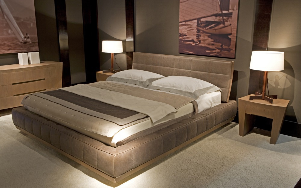 Headsets for bedrooms from Italian manufacturer Annibale Colombo. Set consists of a double bed, chest of drawers and bedside cabinets. The furniture is made of natural wood. The frame is made from wood and the upholstery is presented in a leather version. The color of the bed is beige.