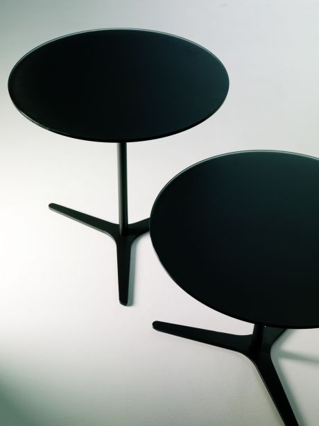 Elica table from Italian manufacturer Bontempi Casa. Round coffee table, made in a modern style. The frame is made of steel, varnished. As raw material for countertops use of coloured glass.
