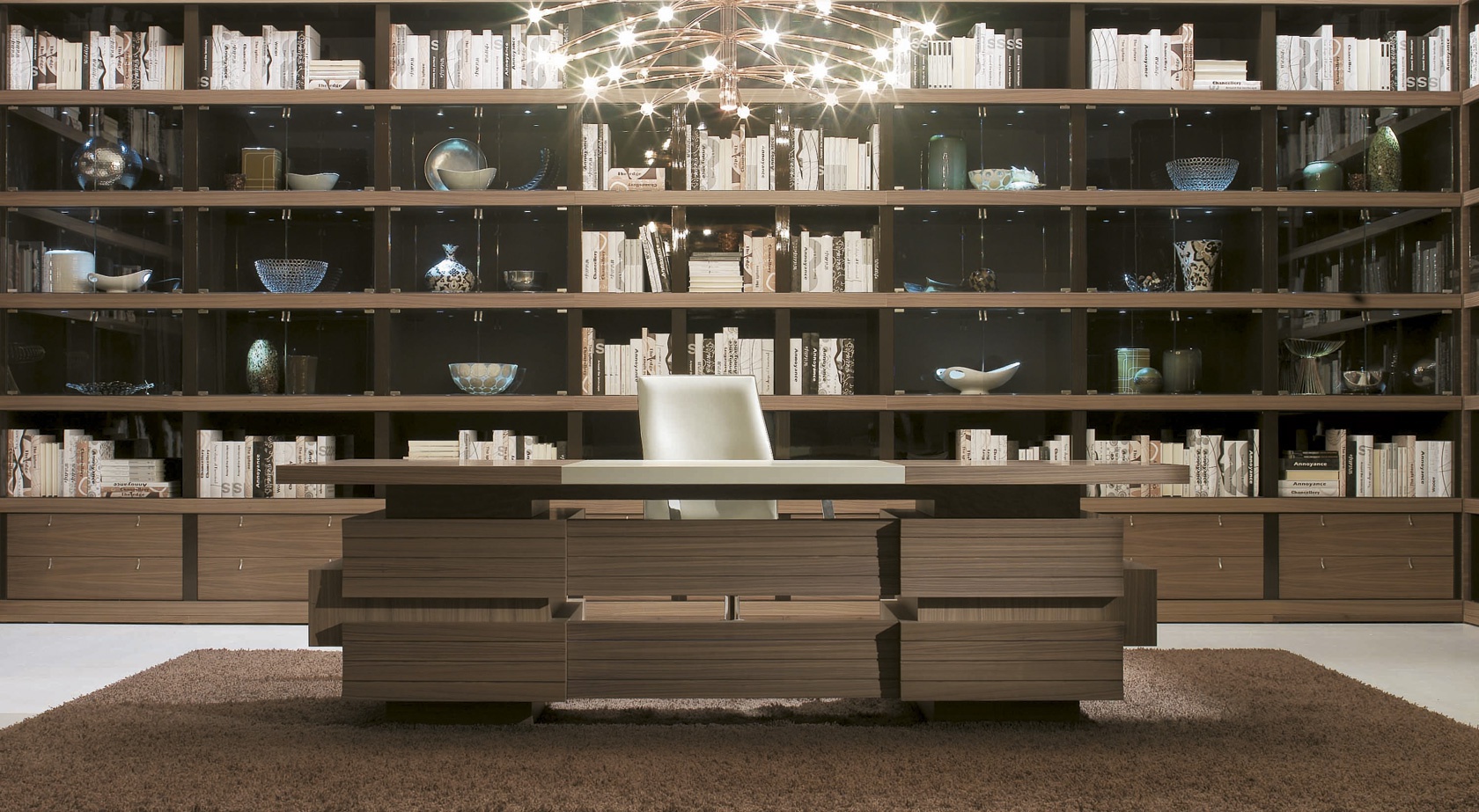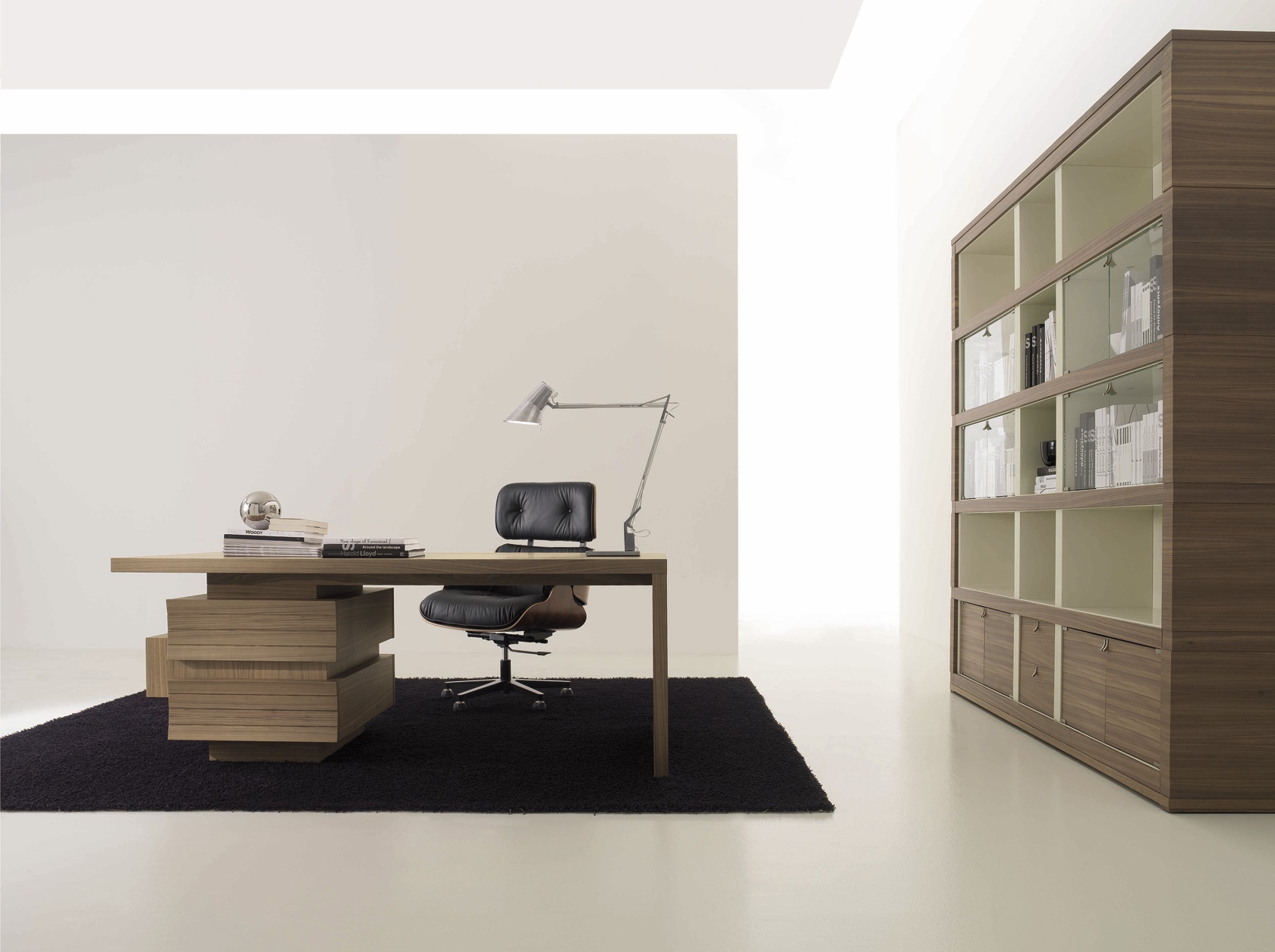 Italian set for Cabinet production Galimberti Nino. Set includes a Desk Quadria with drawers made from wooden panels, veneered with American walnut and Modula modular system, the structure of which is made from American walnut, ash or leather. Finish to be selected from the manufacturer's catalogue. A modern solution for your office.