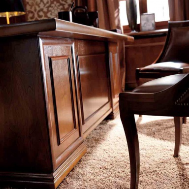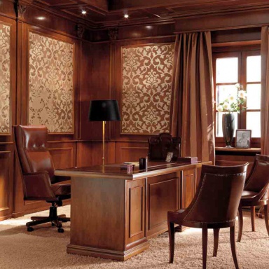 Italian set for Cabinet production Formichi. Made of walnut array. Presented models of table and chairs. High quality finishing technology. Manual polishing. Several layers of varnish before you apply the subsequent layer of lacquer is polished by hand previous. When varnished so the furniture dries, it is rubbed with natural beeswax. Armchair completely upholstered in leather.