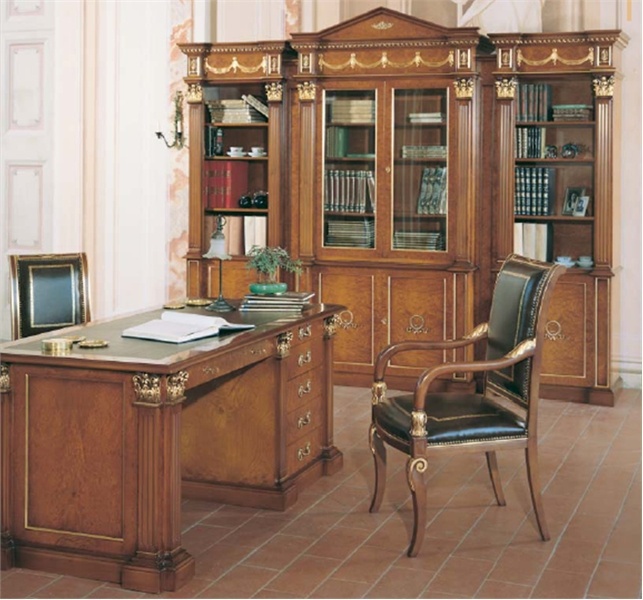 Headsets for the office of the Italian manufacturer Caspani Tino. Predstavlenny model of a table, chairs and shelving. Frame of furniture is made of solid wood, fittings of metal. The model is made in classic style. Colours in stock.