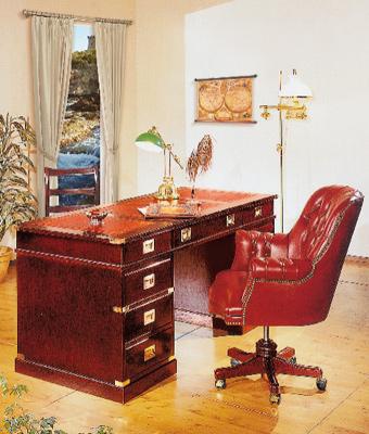 Italian furniture for the office of Regent, production Caroti. The presented model desktop with 9 drawers, swivel chairs in the decoration of quilted leather, multifunction computer table and rack for books. Finish mahogany, upholstery leather, color to be selected from the catalog of the factory, accessories are made of brass. The style classic with a nautical theme.