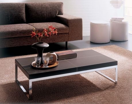 Table Leather from Italian manufacturer Bontempi Casa. Coffee table with frame of steel. As raw materials for table top use the skin. Range of colors according to the catalog.
