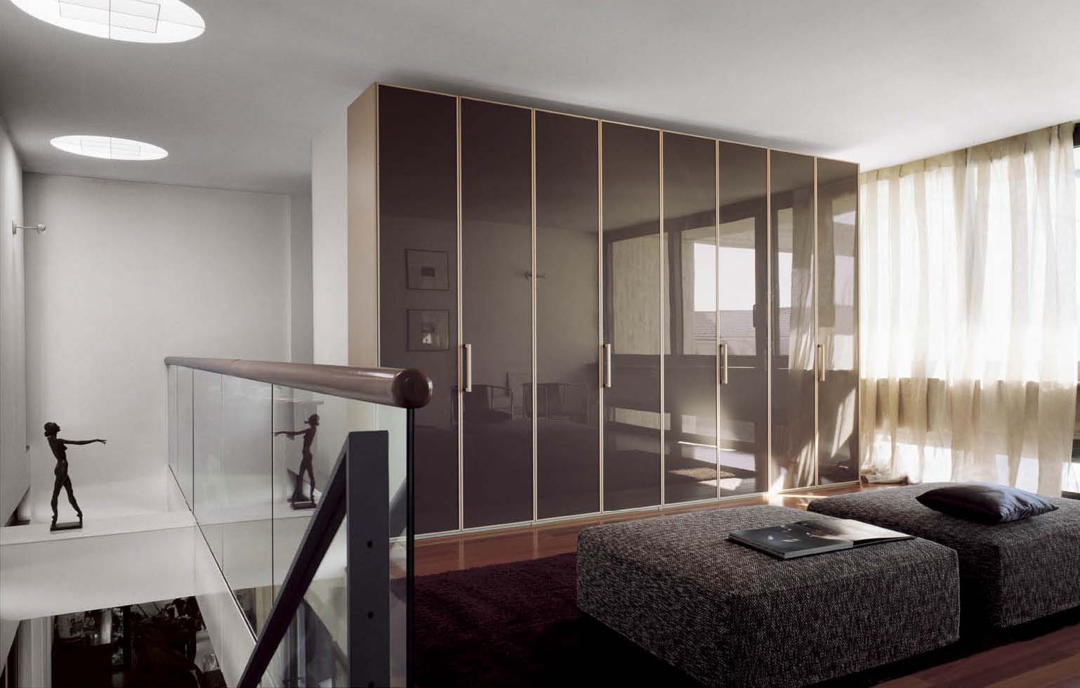 The armadi wardrobe vetri from the Italian manufacturer Gianser Line. The body is made from solid wood, doors - painted glass, handles - metal. A model is intended for bedrooms in modern style. The doors are hinged. Product color brown.