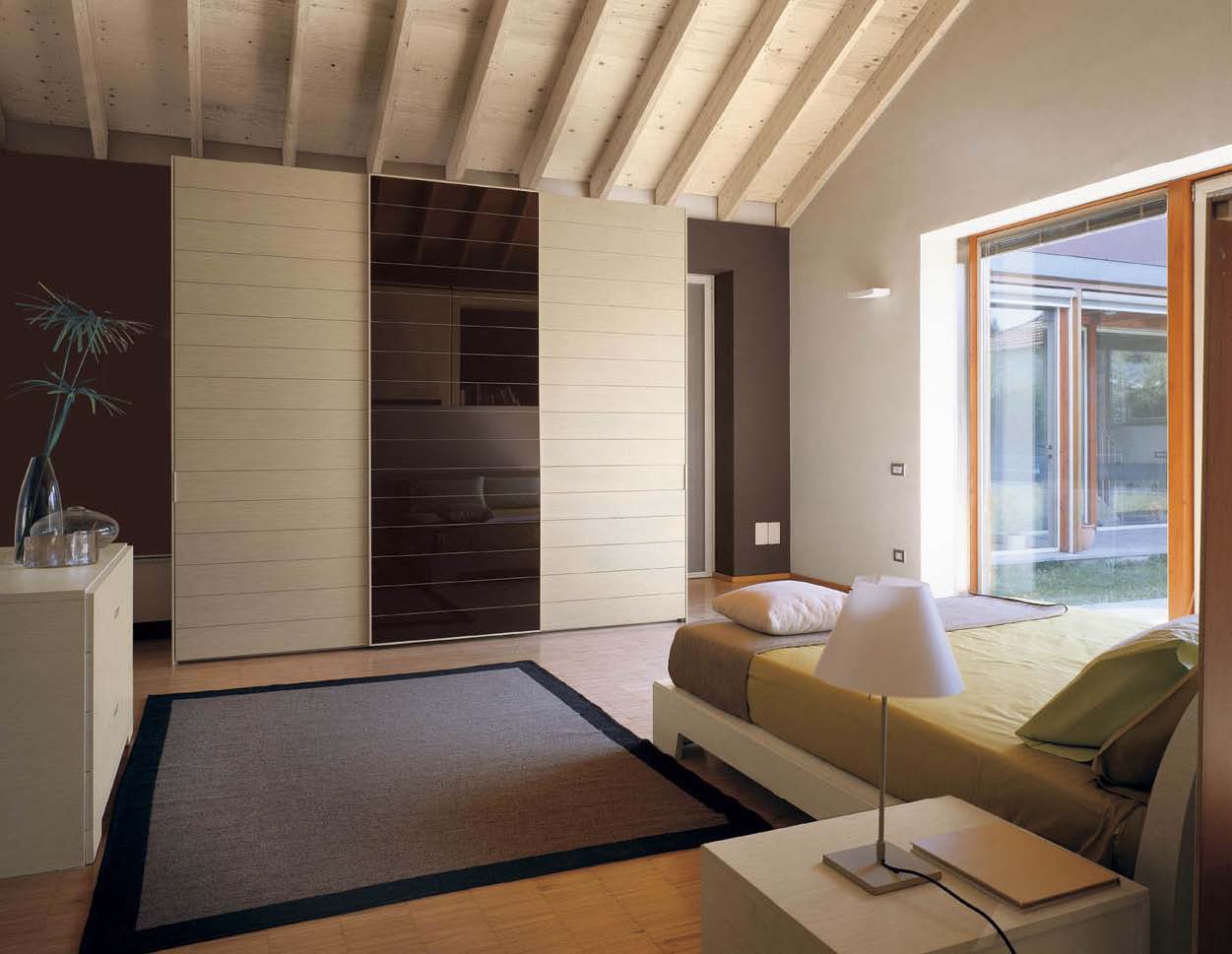 The armadi wardrobe vetri from the Italian manufacturer Gianser Line. The body is made of solid wood in gloss lacquer finish from the range campaign. Model a decorate a bedroom in modern style. Colours in stock.