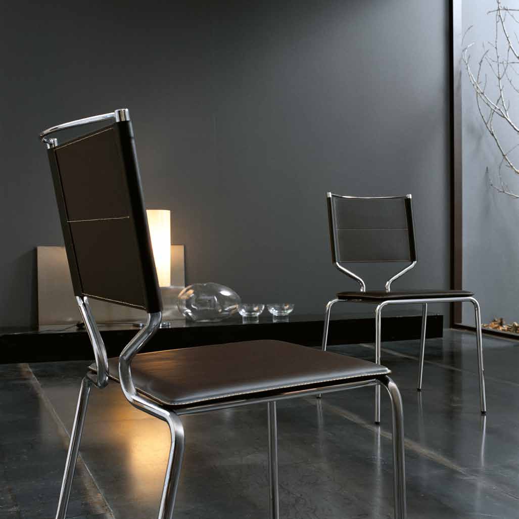 Dining chair from Italian producer Midj. The frame is made of metal, upholstery - leather. The model will perfectly complement a modern interior. Colors in stock