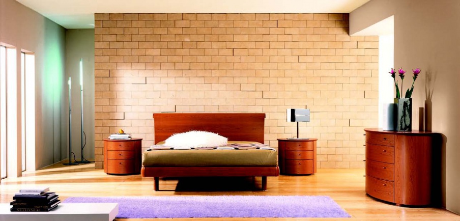Headsets for bedrooms from Italian manufacturer Morassutti. The presented model of a double bed with a low headboard, bedside tables and a chest of drawers oval. The furniture is made of solid wood. The color of the furniture of natural wood. The modern style of execution.