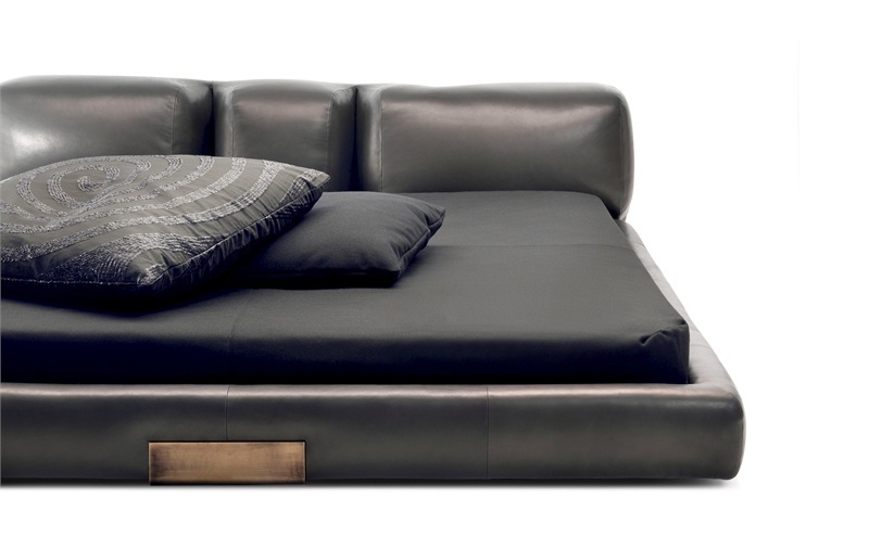 Double bed DC Bed from Italian manufacturer Ceccotti. The bed is upholstered in genuine or artificial leather, decorative trim made of metal. Colours in stock. Design model for the modern interior.