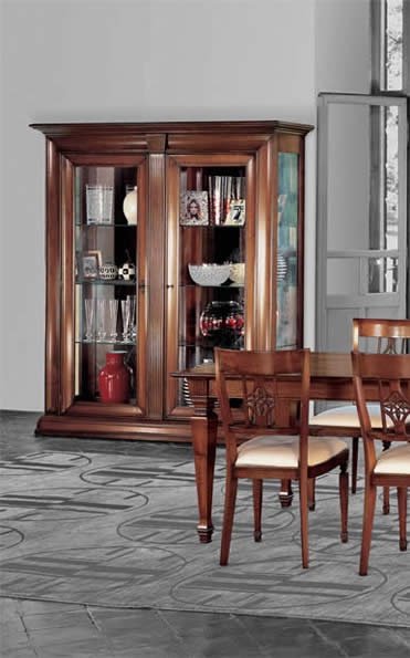 Showcase from Italian producer Le Fablier. Model on a frame of solid wood. Finish - gloss lacquer. Sash and sides are made of transparent glass. Internal filling - glass shelves high quality. The doors can be locked. Made showcase in classical style. Is characterized by durability and elegance.