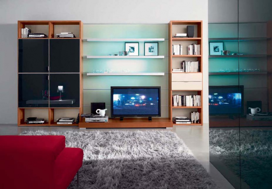 Modular storage system for TV and books, Morassutti