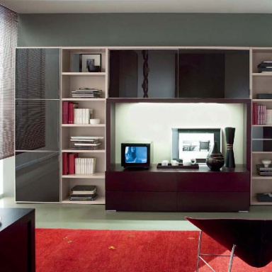 Modular storage system from Italian manufacturer Morassutti. The frame is made from solid wood, doors and drawers - glass. Finishing varnish from the range of the campaign. Module for books and TV. The model will decorate the living room in a modern style. Colours in stock.