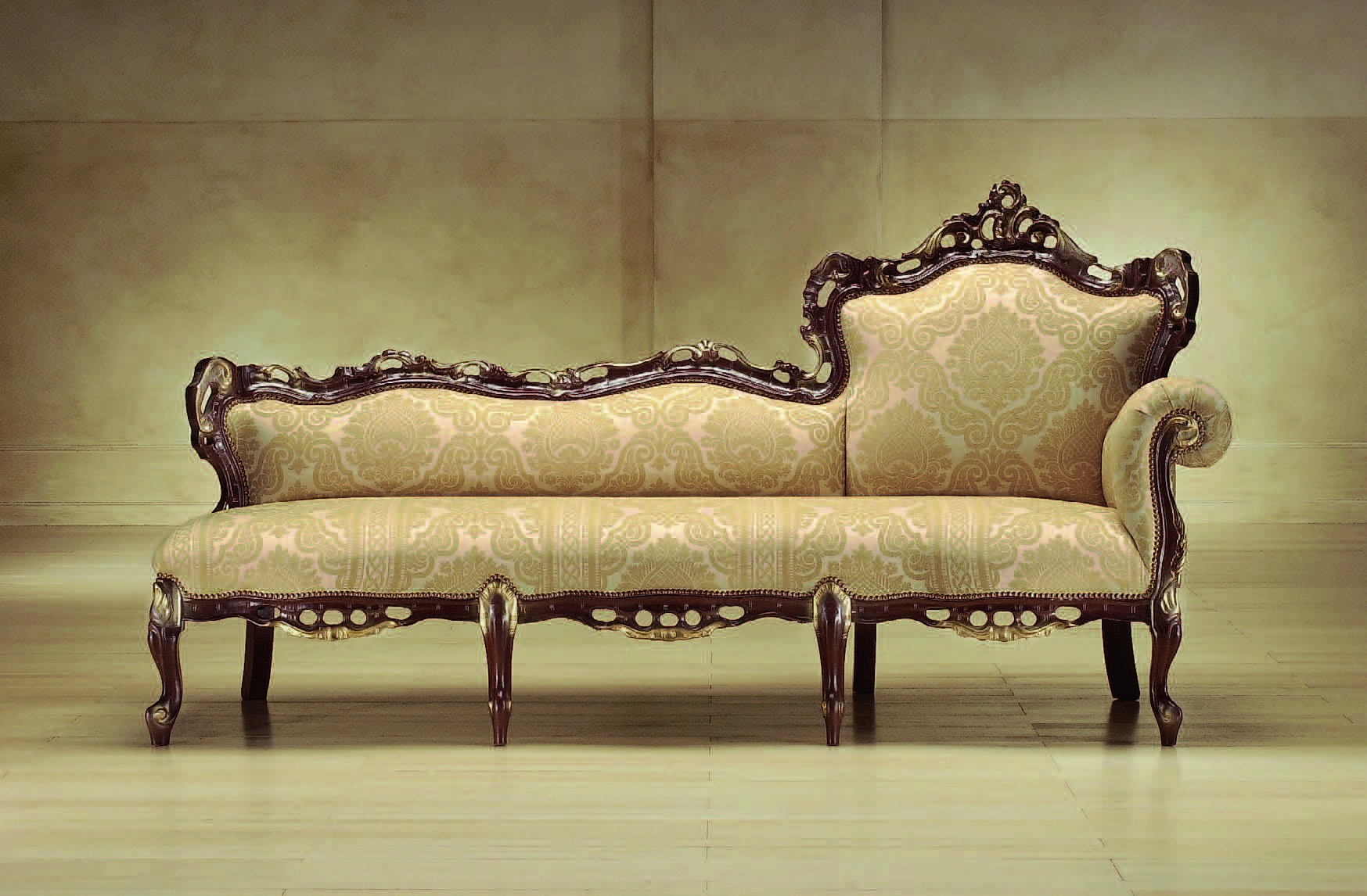 The couch Dormeuse Paola from the Italian manufacturer Morello Gianpaolo. The frame is made from solid wood, filler - foam, upholstery - textiles from a range of campaigns. Finish options: carved/gilt/lacquer. Triple the relaxation model is designed for the living room in a classic style. Colors: beige, natural wood color.