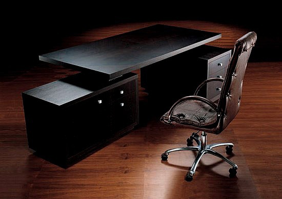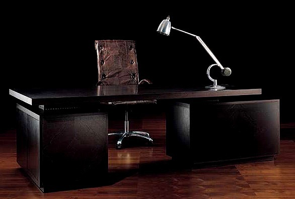 Headsets for the office from the Italian manufacturer Smania. Includes a Desk and a chair on wheels. Material - solid wood. Finish to be selected from the range of the company. A chair on metal base with wheels. Upholstery leather of dark color. Headsets are made in a modern style.