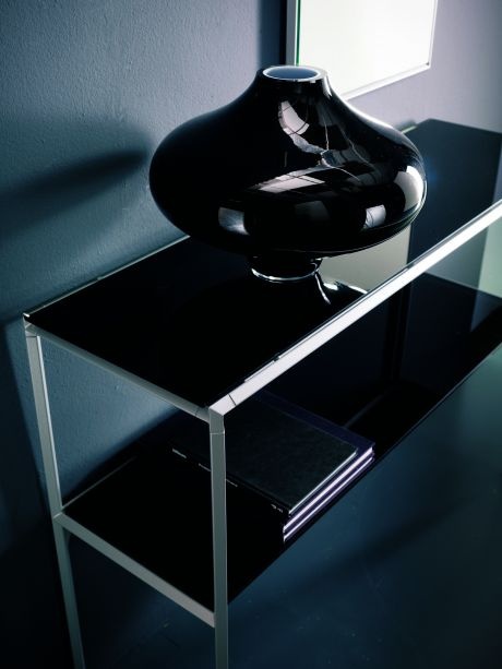 Console Diagonal from Italian manufacturer Bontempi Casa. The model with the steel frame and shelves made of glass. The console is designed in modern style. The range of shades in stock.
