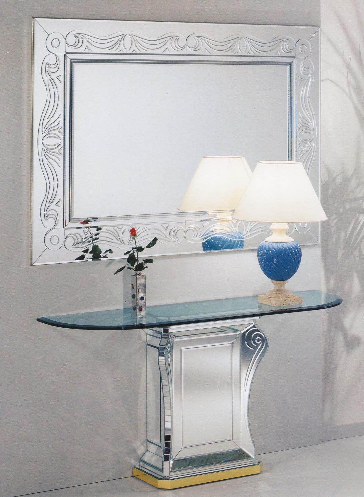 The console from the Italian manufacturer MP-2. The base is made from solid wood, the surface is treated with varnish from the range of the campaign. Worktop - glass. Model for living room in classic style. Product color silver.