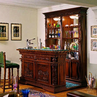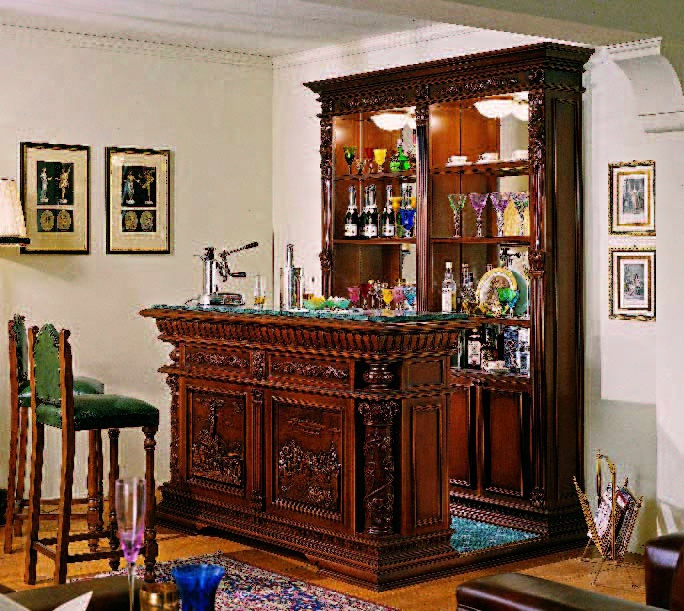 Bar from the Italian manufacturer Mobil Deri. The frame is made from solid natural wood, top glass. Finish options: inlay/lacquer. A great model for rooms in a classic style. Product color natural wood.