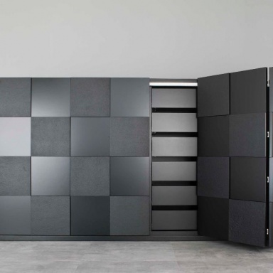 The Cabinet is made of solid wood with a checkerboard pattern, Capo D' Opera