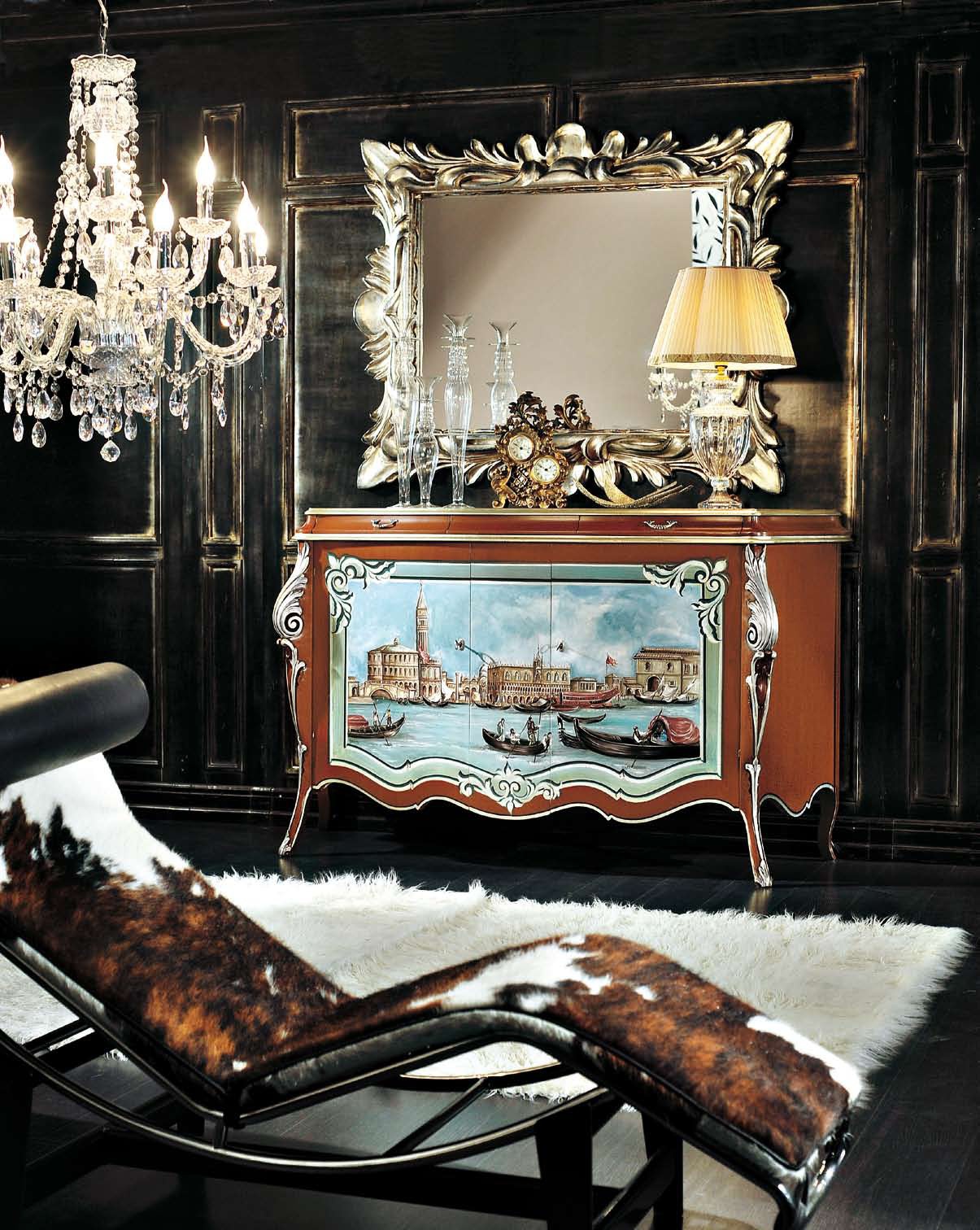 A chest of drawers from Italian manufacturer Modenese Gastone. The model is made of solid wood. The frame is completely covered with varnish. Finish to be selected from the range of the company. Decorative accessories made of metal. Design feature - the author's paintings adorning the facade. Made chest in a classic style.