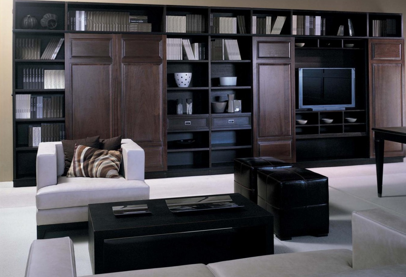 Italian sofa set production L'origine. Set includes: modular system for storing books and things, coffee table, chair, sofa and footstools. The frames are made of wood. Upholstery - leather or textiles from a range of companies. Colors: brown, white and black. Set is made in modern style.