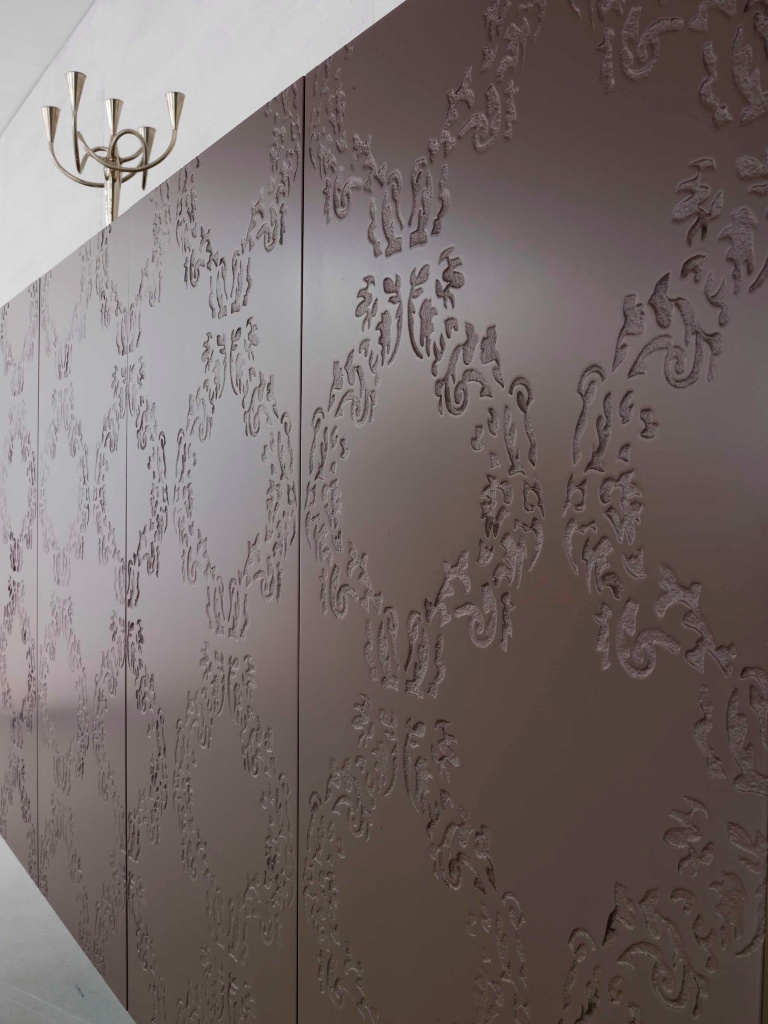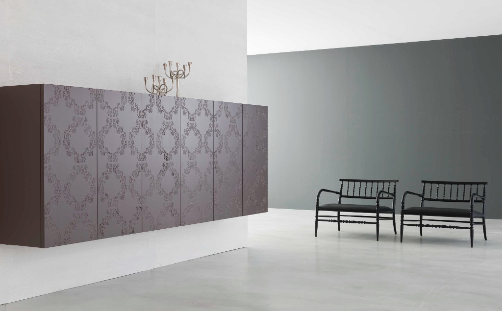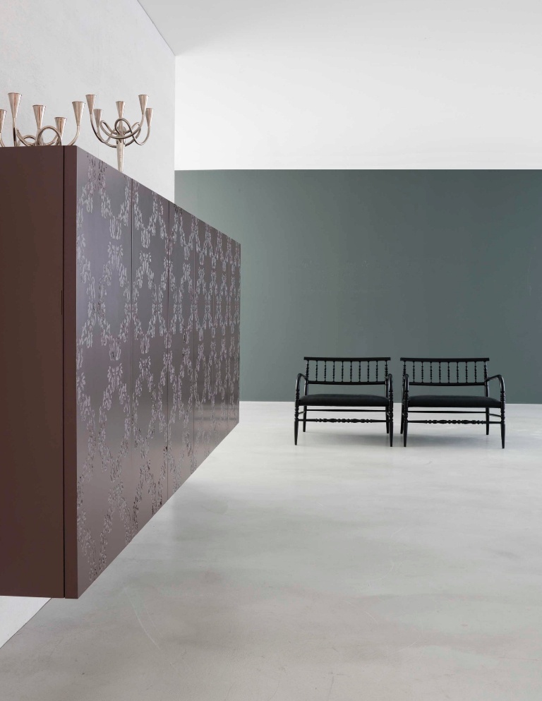 Suspended Cabinet in a contemporary style from Italian manufacturer Capo D' Opera. The product is made of solid wood of valuable breeds. Model brown colour, the originality of the model is characterized by its design a handmade ornament in the form of carved floral patterns.