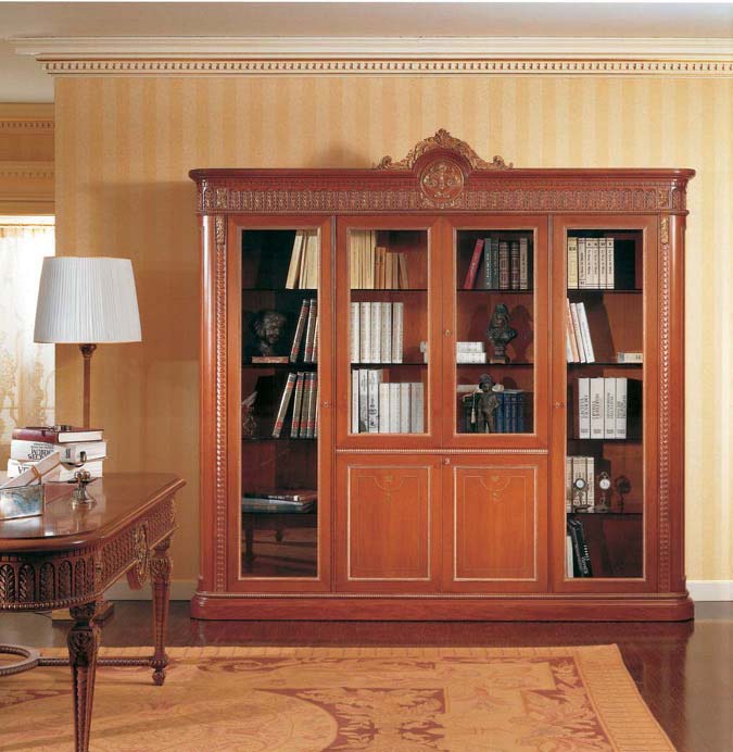 Headsets for the office from the Italian manufacturer OAK. Consists of desks, chairs and a bookcase. Frames models made from solid wood. Finish option to choose from a range of companies. Sash of clear glass. The chairs in fabric. Decor - hand carved. Set made in a classic style.