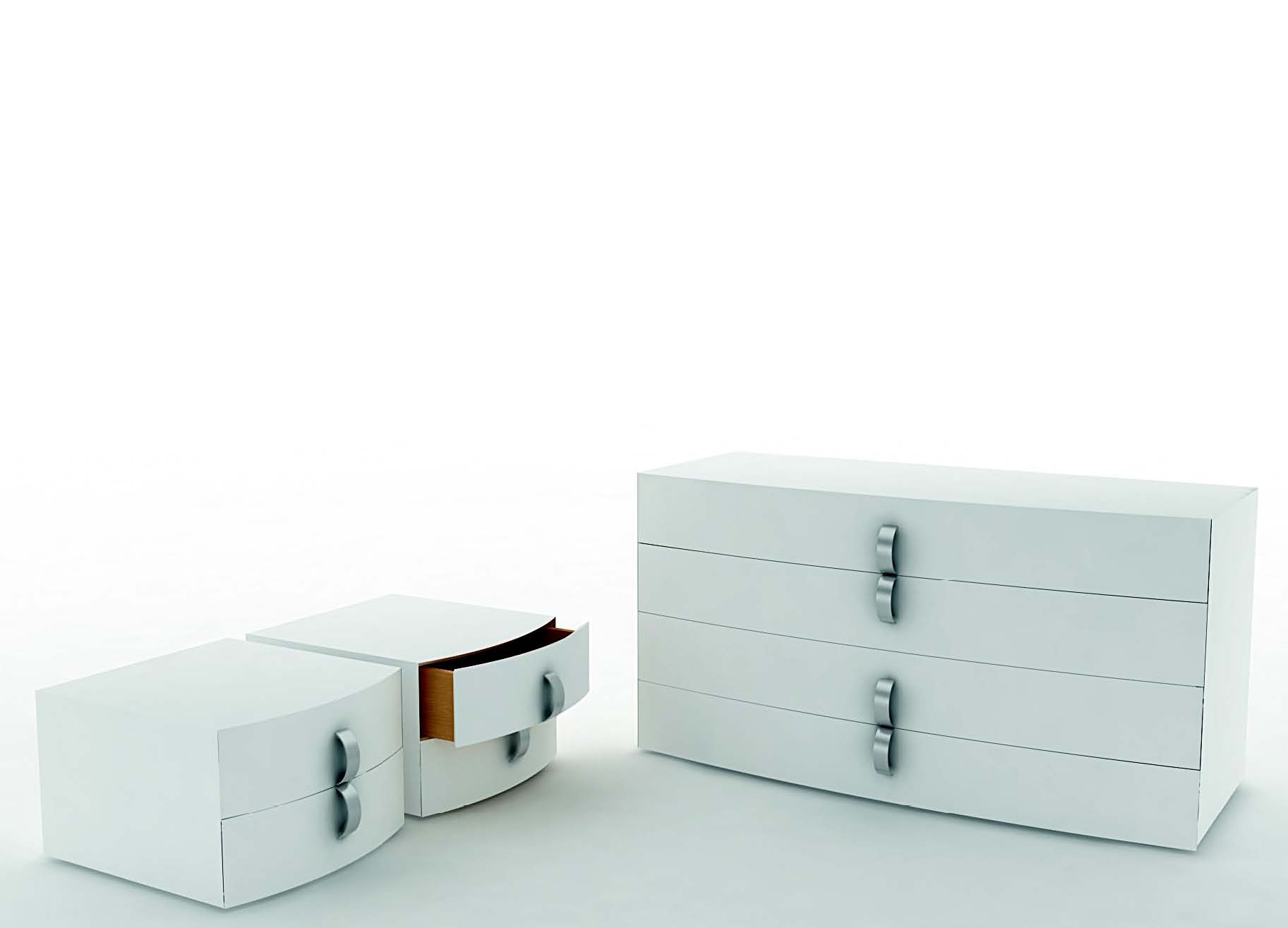 Set bedroom from Italian producer Orizzonti. Set consists of chest of drawers and bedside cabinets. The case is made of natural wood. The finishing - varnish. The furniture in modern style, will perfectly complement the interior of Your bedroom.