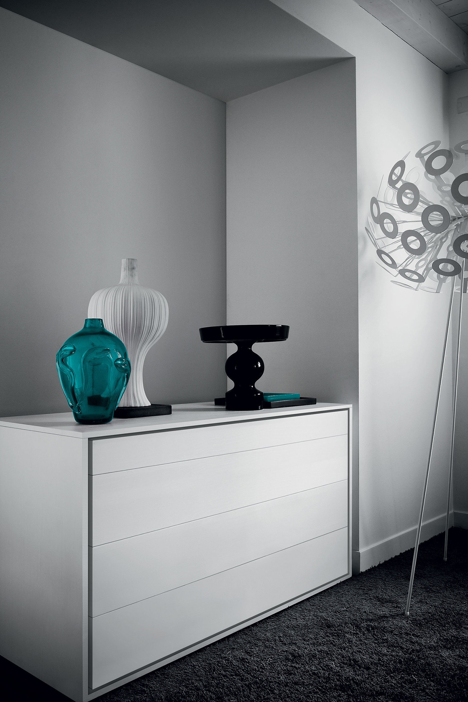 The VALLEY chest of drawers from Italian manufacturer Novamobili. The model includes several drawers. Frame made of solid wood. Finish available in white and black. The model has practicality and spaciousness. The chest is made in a modern style.