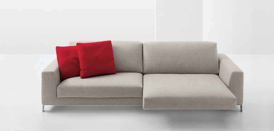 A double sofa from Italian manufacturer Nube. Model with legs in chromed metal. Frame made of solid wood. Upholstery textile, filler - polyurethane foam of different firmness. Variant colors and textures to choose from a range of companies. In addition offers decorative pillows.