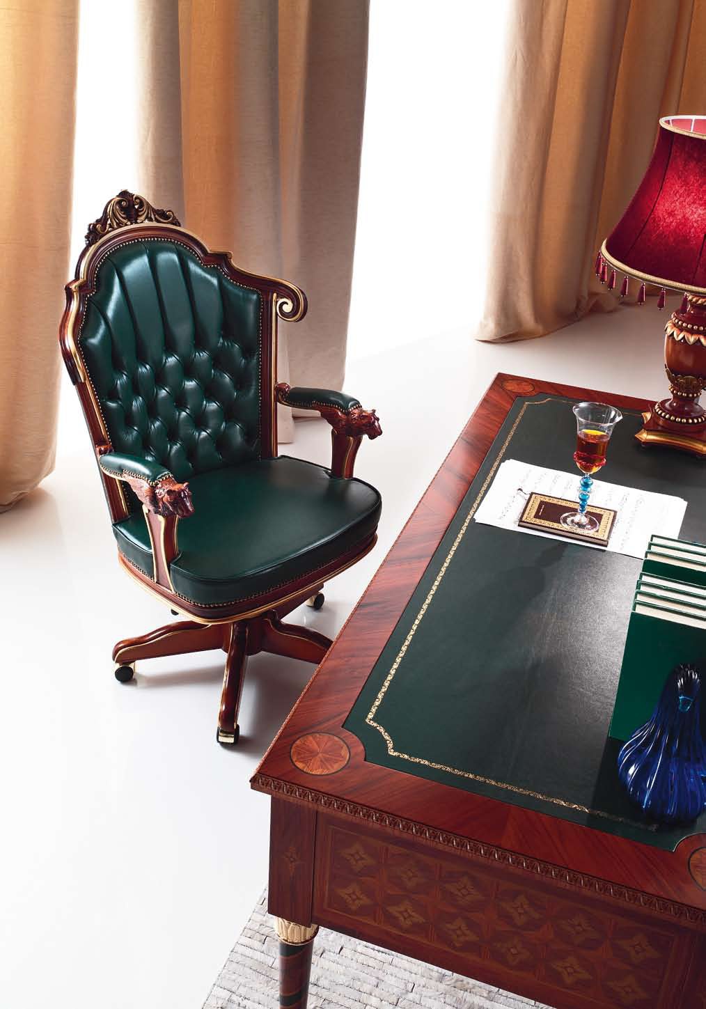 A chair from the Italian manufacturer Paolo Lucchetta. Model on a frame of solid wood finish in high gloss varnish. Upholstery leather from the company portfolio. The grounds complement the wheels. The back is decorated with ornamental stitch-Capito. Made chair in a contemporary style.