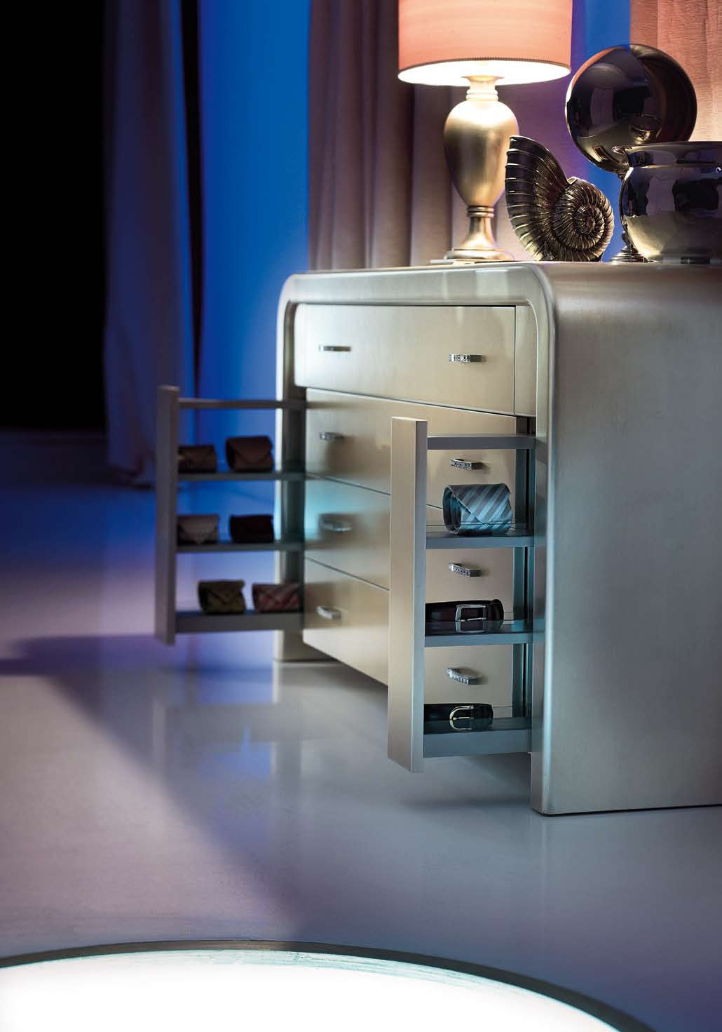 Headsets for bedrooms from Italian manufacturer Paolo Lucchetta. Includes double bed, couch, bedside tables, chest of drawers and dressing table. Frames models made from solid wood and metal. Upholstery textile from the company portfolio. The metal fittings. Set is manufactured in contemporary style.
