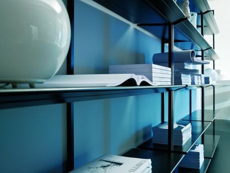 Elton bookcase from Italian manufacturer Bontempi Casa. An excellent model made in a modern style. In the basis frame made of metal. Shelf used glass. A large number of colors.