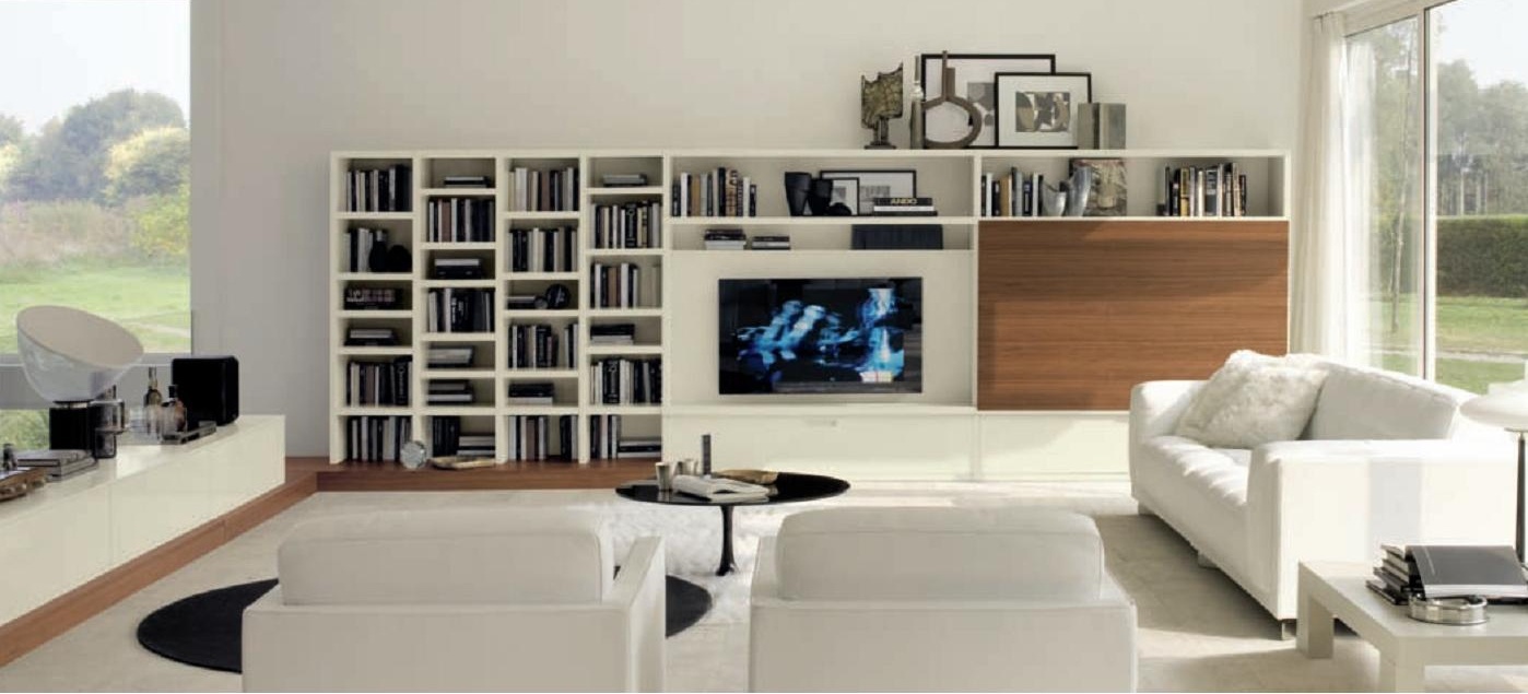 Modular system for the living room, from the Italian manufacturer Map. the frame is made of wood. Finish - gloss lacquer from the company portfolio. The model is designed for audio, video equipment for TV and for books. The system is designed in a contemporary style.