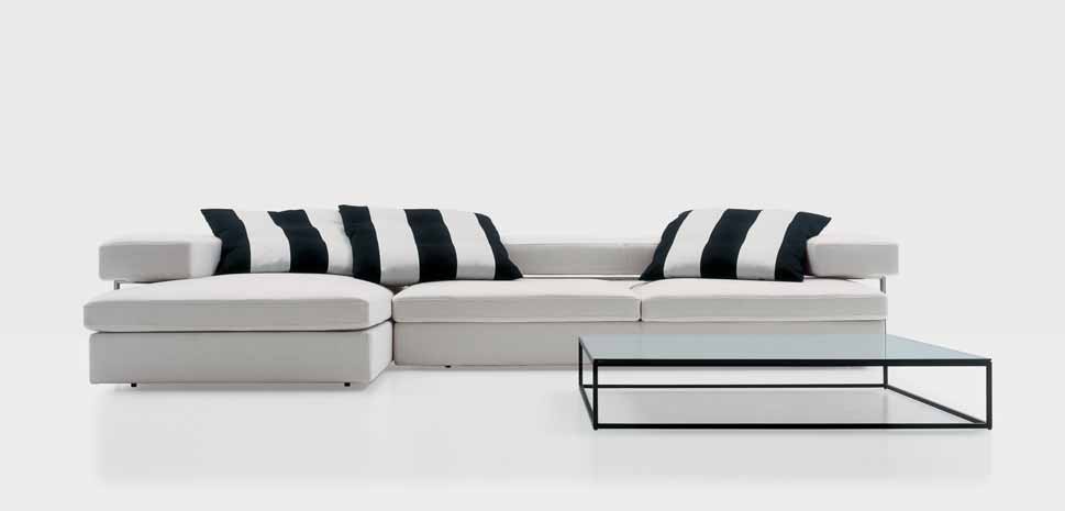 Corner sofa from Italian manufacturer Nube. Model on low legs in chromed metal. The frame is made from solid wood. Upholstery textile white. The cushion filling is foam. Set is manufactured in contemporary style. Perfectly fit and beautify the interior of your home.