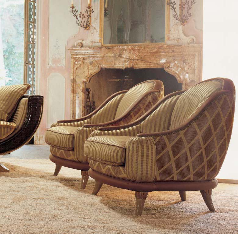 The armchair from Italian manufacturer OAK. Model on wooden legs. The frame is completely hidden. The backrest and the armrests are rounded off form. Seat cushion is removable. Upholstery textile from the company portfolio. Filler - polyurethane foam. The model is made you classic style.