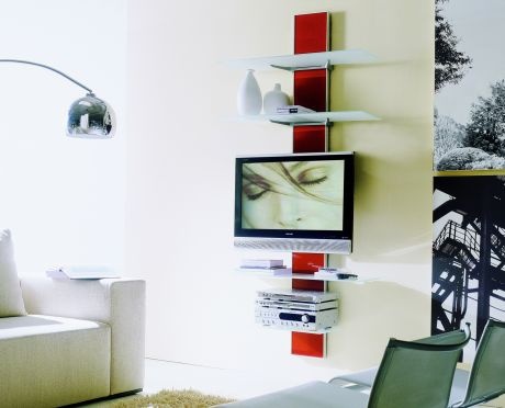 Voila stand from Italian manufacturer Bontempi Casa. Wall rack with aluminum frame construction. Shelves are made of glass. Range of colors according to the manufacturer's catalogue.
