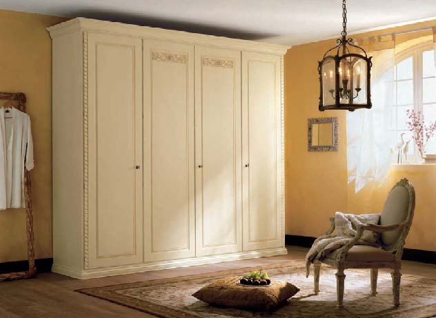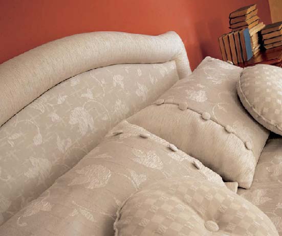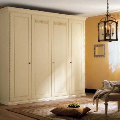 Headsets for bedrooms from Italian manufacturer Favero. Set includes double bed, wardrobe, dressing table, two bedside tables. The furniture is made of solid wood, upholstered in white textile. A style classic.