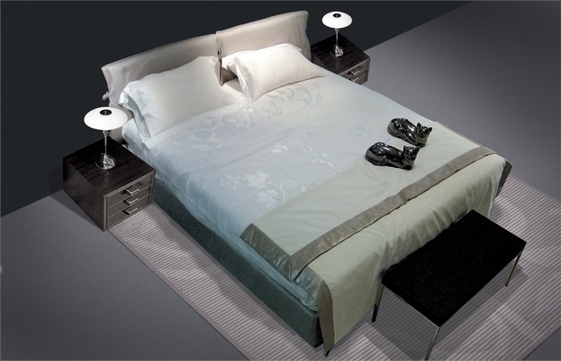 Set for bedroom Flou. The presented model beds, benches prekrastnoe and cabinets. The frame is made from aluminium, upholstery - leather or textiles from a range of campaigns. Pillows headboards beds with curves that are regulated by means of manual mechanism. Model with built-in storage box. A good choice for the bedroom in modern style. Colors: white, red.