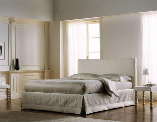Set for bedroom Flou. The presented model prikrovatnyh beds and cabinets. The bed is upholstered in textiles from the range of the campaign. A model with a high headboard and a storage compartment. Perfect set for bedroom in modern style. Product color white.