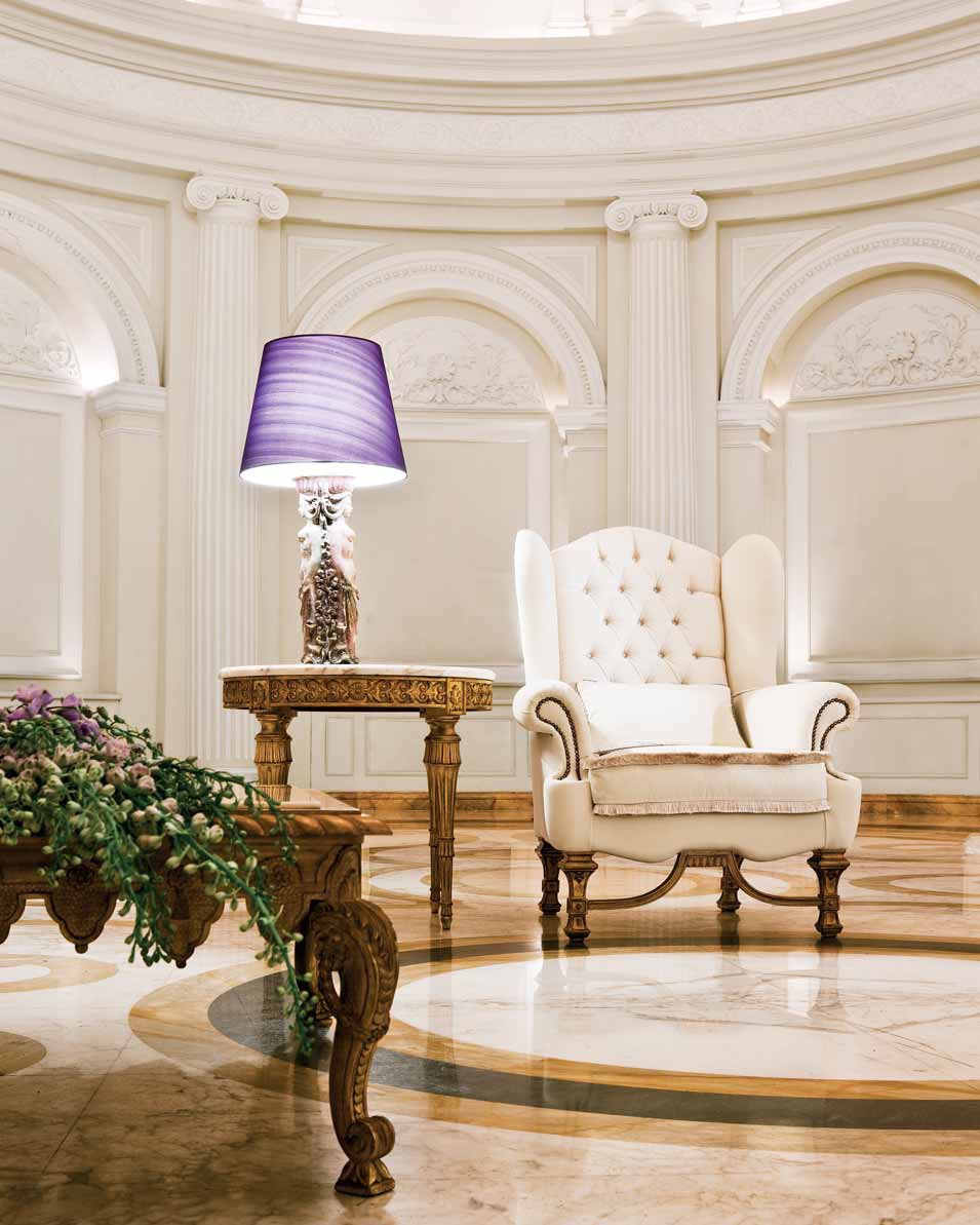 A chair from the Italian manufacturer OAK. The model is made in classic style. Legs are figured the forms of solid wood. The frame is completely covered with textile. Color option - white. Armrests semicircular shape. Seat cushion is removable. Model of decorative decorated with stitch-Capito. The model will perfectly fit the interior of your home and give it elegance and sophistication.