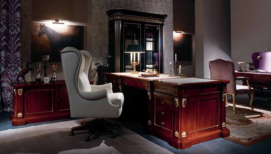 Headsets for the office from the Italian manufacturer OAK. Consists of Desk and chairs. Frames models made from solid wood. Finish - gloss lacquer. Drawers complemented with metal handles. The chair is covered in a skin of white. The Foundation supplemented the wheels. Set made in a classic style.