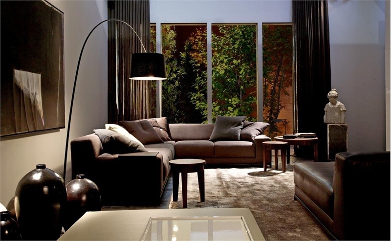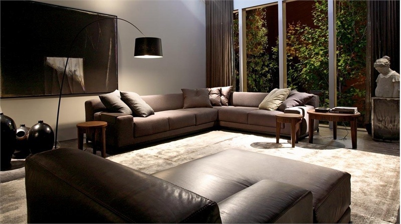 Italian sofa set production Meridiani. Set includes: sectional sofa and chaise. The frame is made from solid wood, upholstery - leather or textiles from a range of campaigns. Elegant model living room designed in modern style. Product color - black.