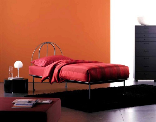 Set for bedroom Italian manufacturer Flou. Presented model odnopolnye beds and bedside tables. The frame is made of metal. Single model with rigid high headboard. Set is suitable for bedrooms in modern style. Headset color black.