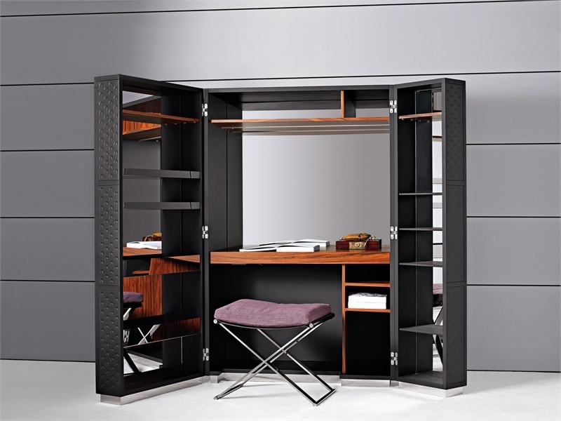 Italian set for Cabinet manufacturer Flou. Model upholstered in leather with three-dimensional "relief" pattern. The rear wall of the Cabinet and the inside of the door mirror. Inside there are steel height-adjustable wooden shelves. Gorgeous writing model is designed for the office in modern style. Colors: brown, black, natural wood color.
