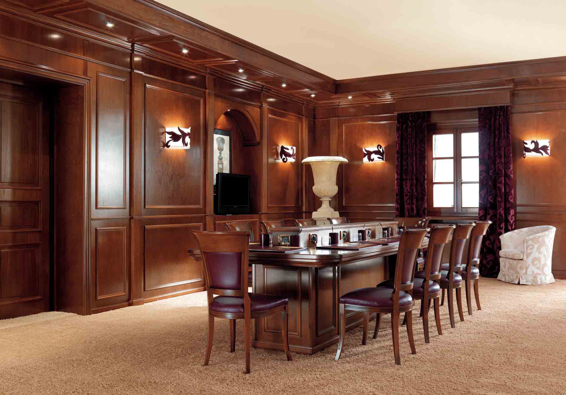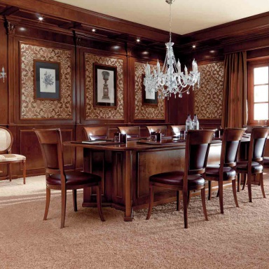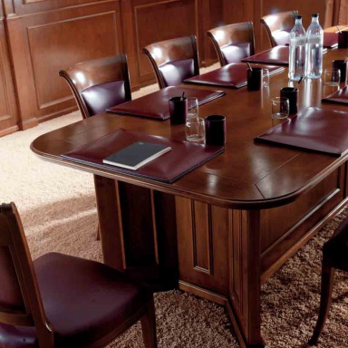 Headsets for the office from the Italian manufacturer Formichi. Conference table, chairs and a bookcase. Model in the classic style. Made of walnut array. High quality finishing technology. Manual polishing. Several layers of varnish. Before you apply the subsequent layer of lacquer is polished by hand previous. When varnished so the furniture dries, it is rubbed with natural beeswax.