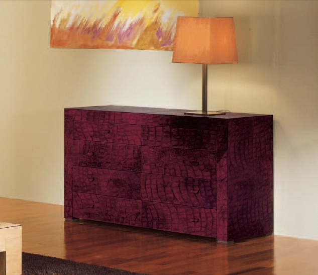 A chest of drawers from Italian manufacturer Origgi Salotti. The model with four drawers. The frame is made from solid wood. The leather trim to choose from a range of companies. The drawers feature wooden handles. The chest is made in a modern style. A beautiful decoration for your home interior.