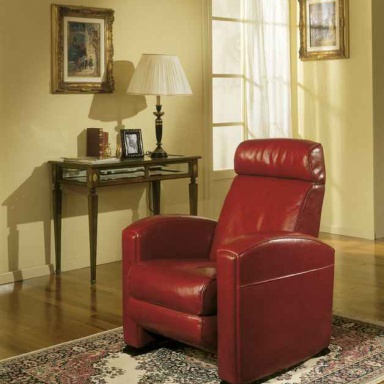 A chair from the Italian manufacturer Origgi Salotti. Model on low legs. The feature design provides high back and rounded armrests. Material - solid wood. Leather upholstery from the collection of the company. Will decorate the interior of your home.
